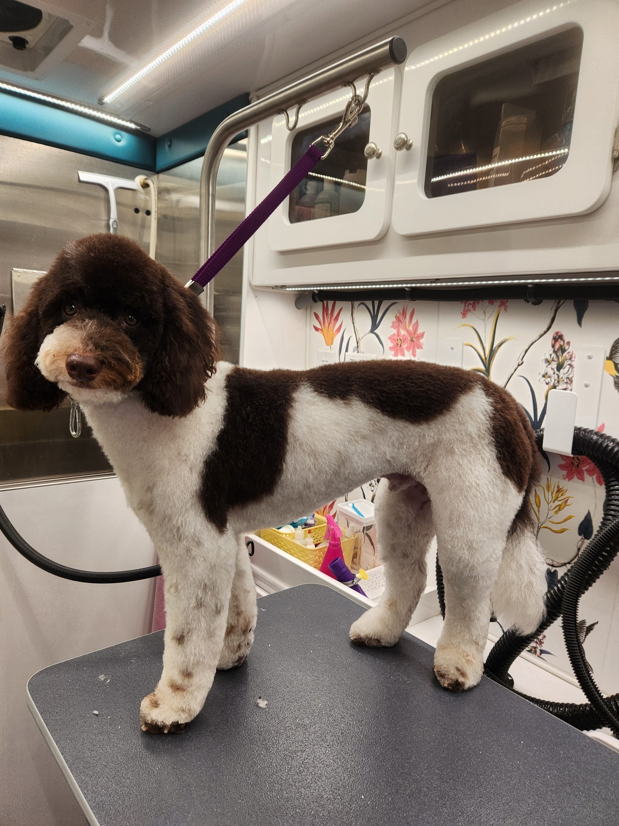 A $35 base travel fee applies to each house call. This helps us keep the wheels rolling so we can continue bringing stress-free grooming right to your doorstep!