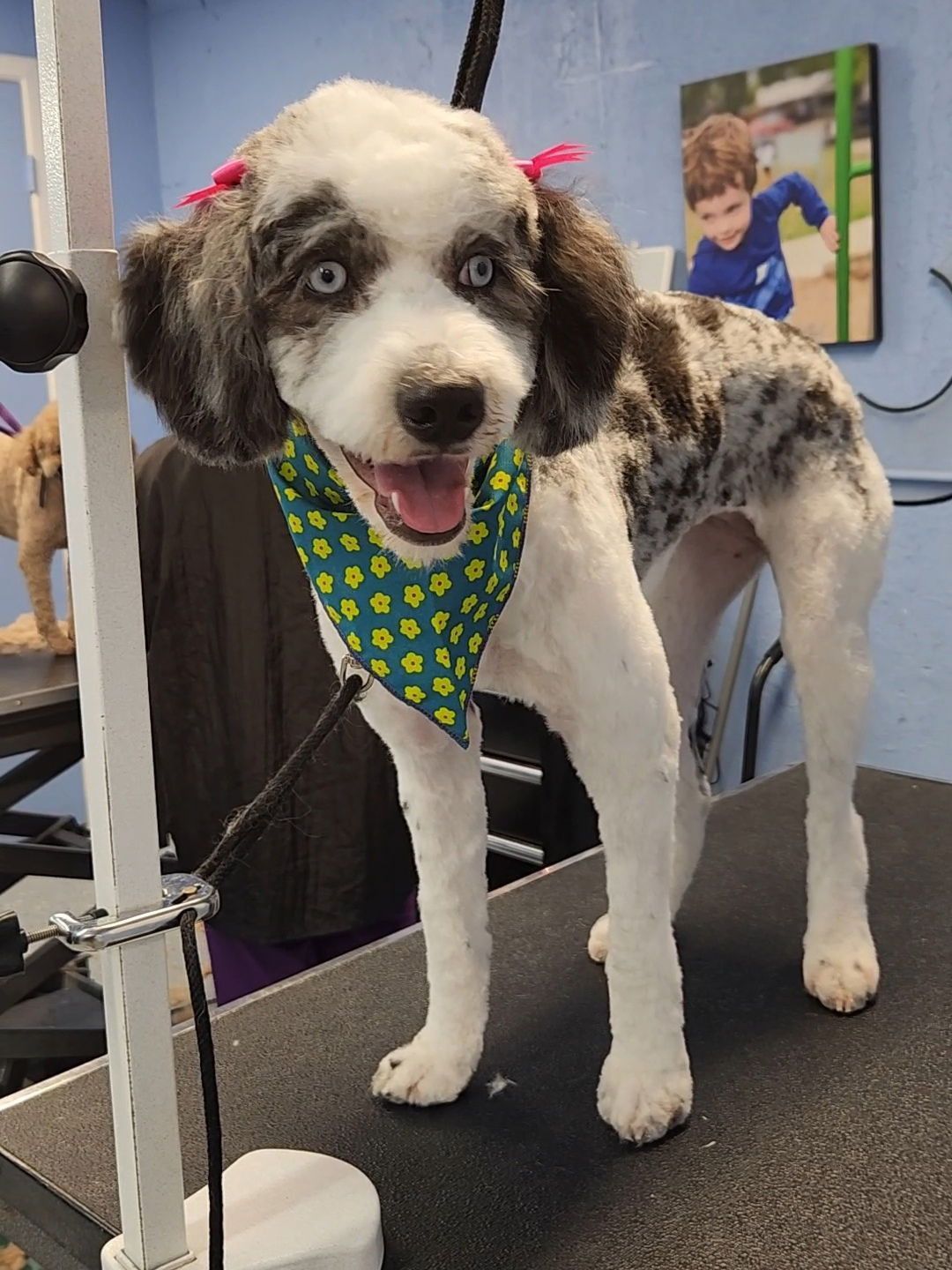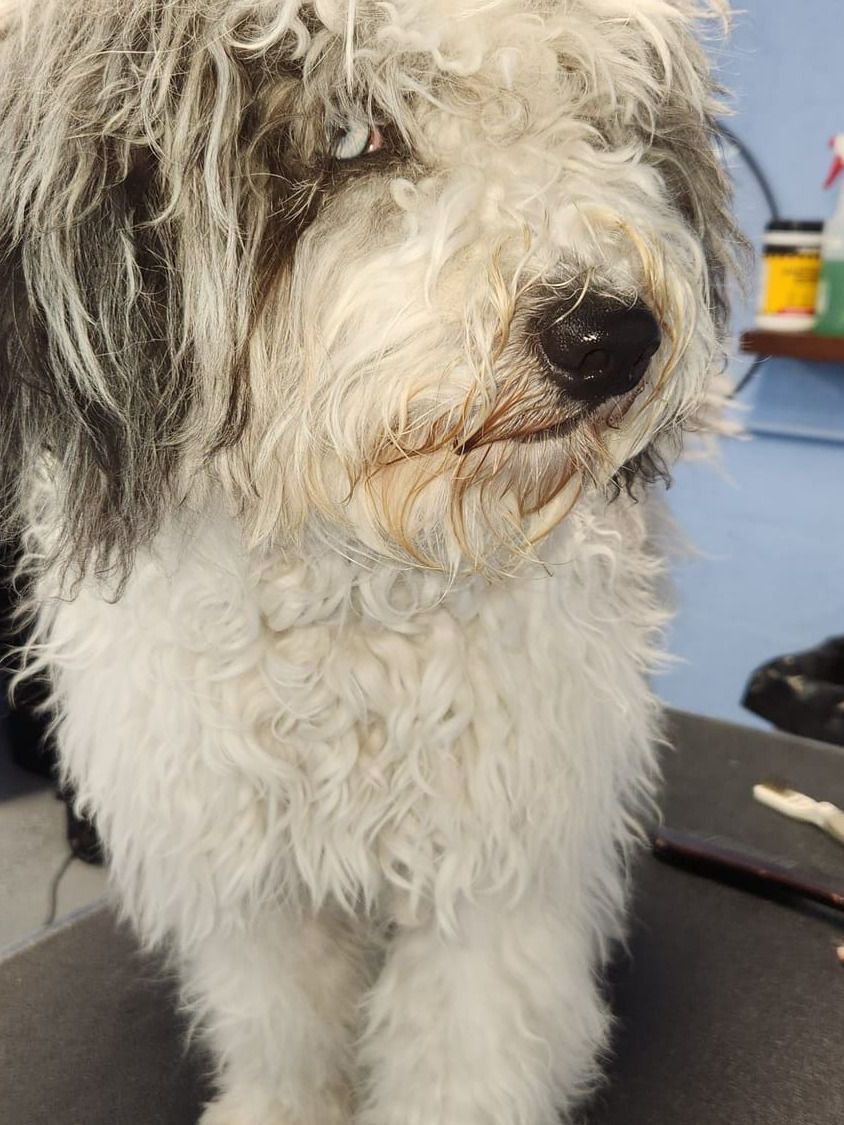 Heavy matting on a dogs coat can cause problems. In some cases a full body shave down is required. This is an example of what a matted shave down looks like. Not so bad!